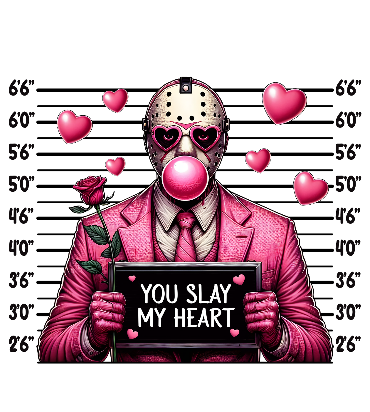 A valentine-inspired twist on classic horror icons, blending dark romance with playful irreverence. This is perfect for the horror lovers with a soft spot for Valentine chaos.